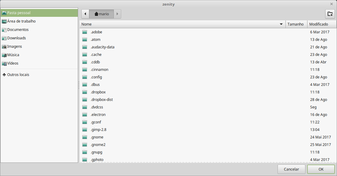 Selecionando Diretório em /home/mario/