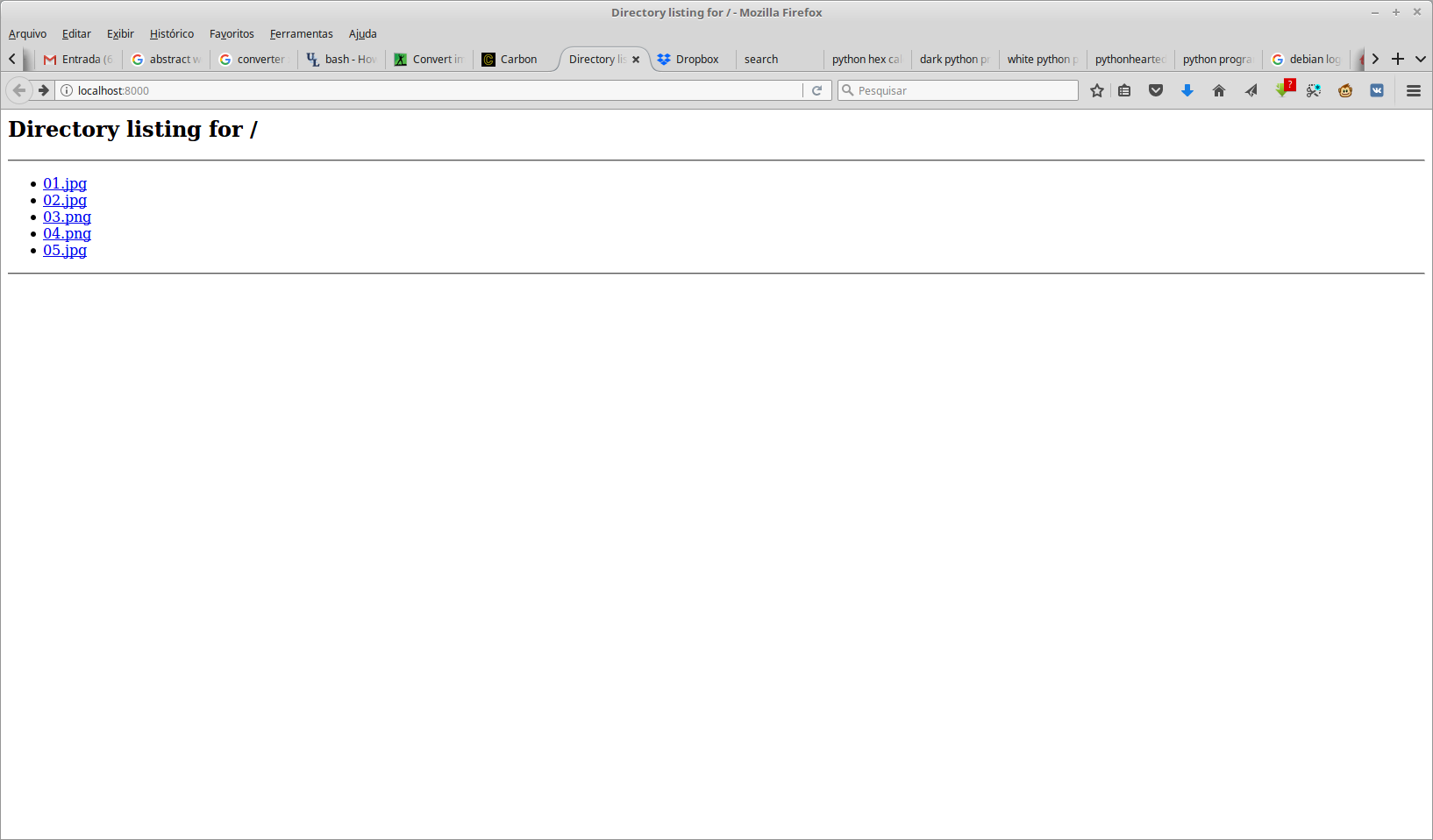 Isso mostra que o servidor HTTP do Python está ativo e o diretório local acessível via browser. A porta padrão é a 8000.